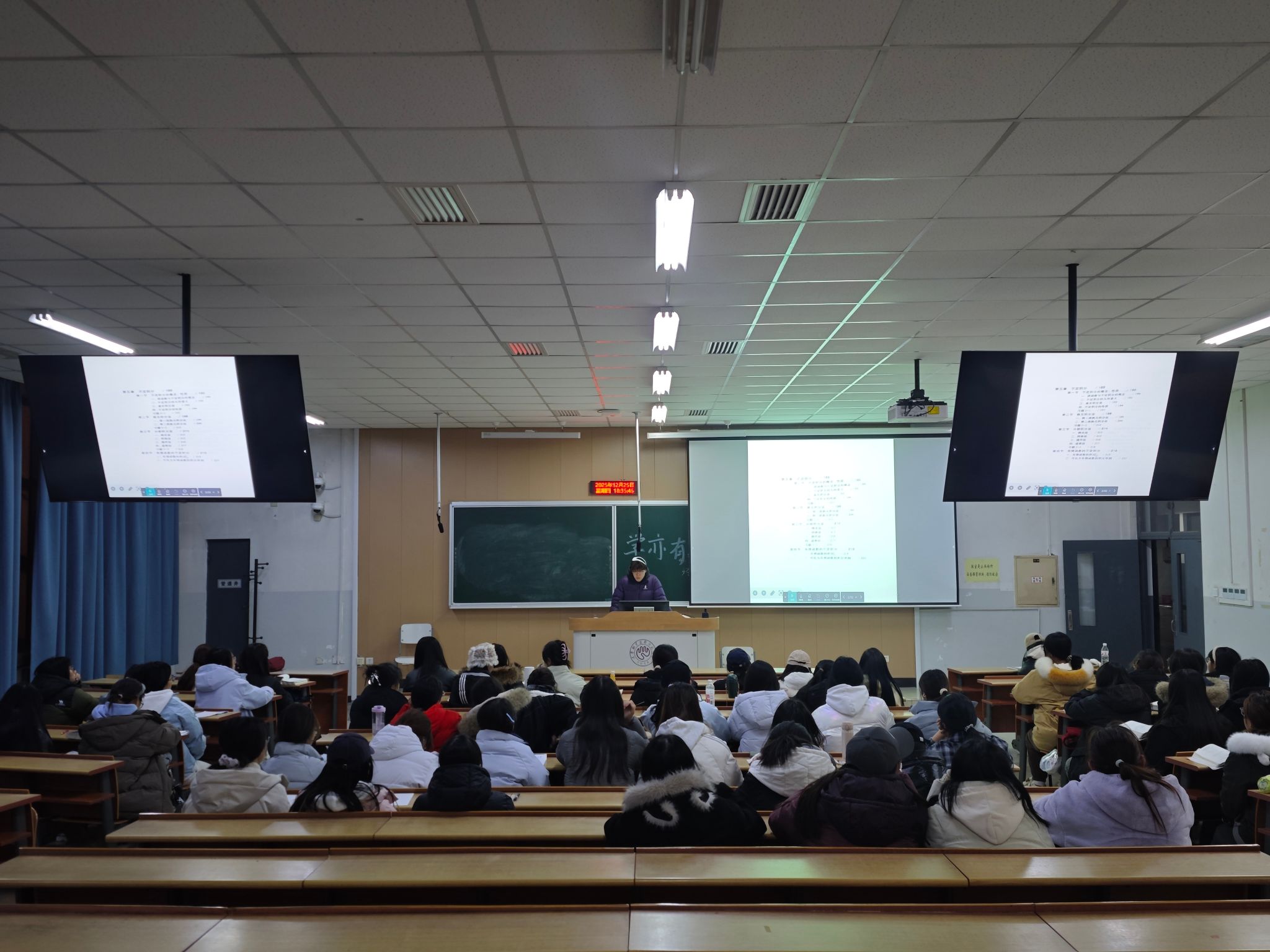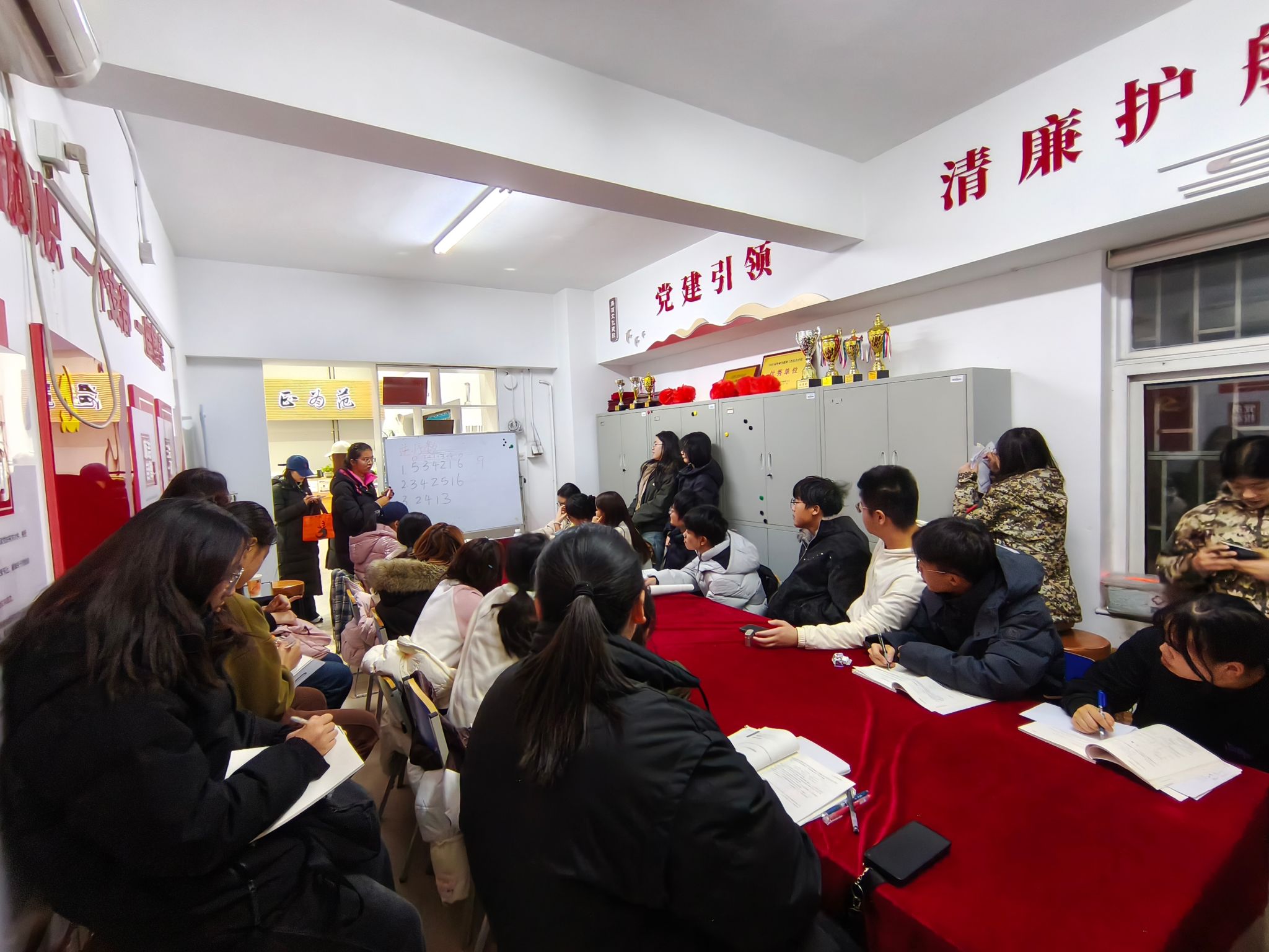学院精心遴选专业成绩优异、表达能力突出的优秀学子组建讲师团,通过班级调研、问卷收集等方式精准把握同学们的学习薄弱环节,针对性设计辅导内容。课堂上,“朋辈小老师”结合自身学习经验与解题技巧,将抽象知识转化为通俗讲解,围绕高频考点拆解思路、梳理易错点,通过清晰板书推导逻辑、构建知识框架,同时设置互动答疑环节,以“讲解+演练”模式确保学子学有所获。