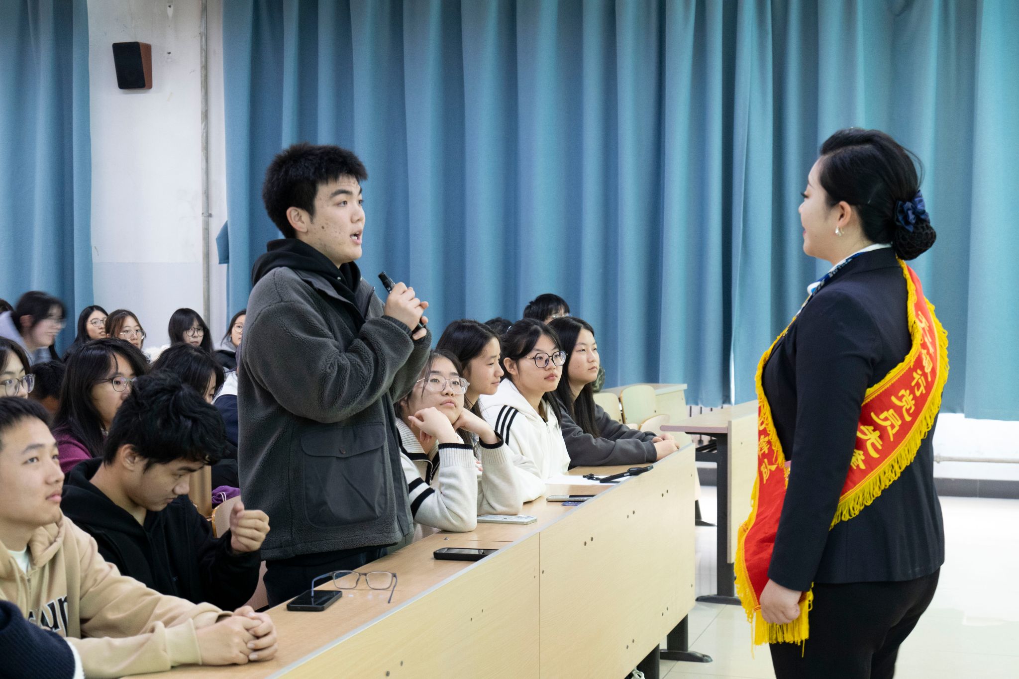 讲座现场气氛热烈,全程穿插互动问答环节,学生积极参与“反诈先锋”“防非能手”“击鼓传花”等趣味互动游戏,大家围绕日常遇到的疑似诈骗场景踊跃提问,谢地逐一耐心解答,进一步加深了学生对反诈知识的理解。