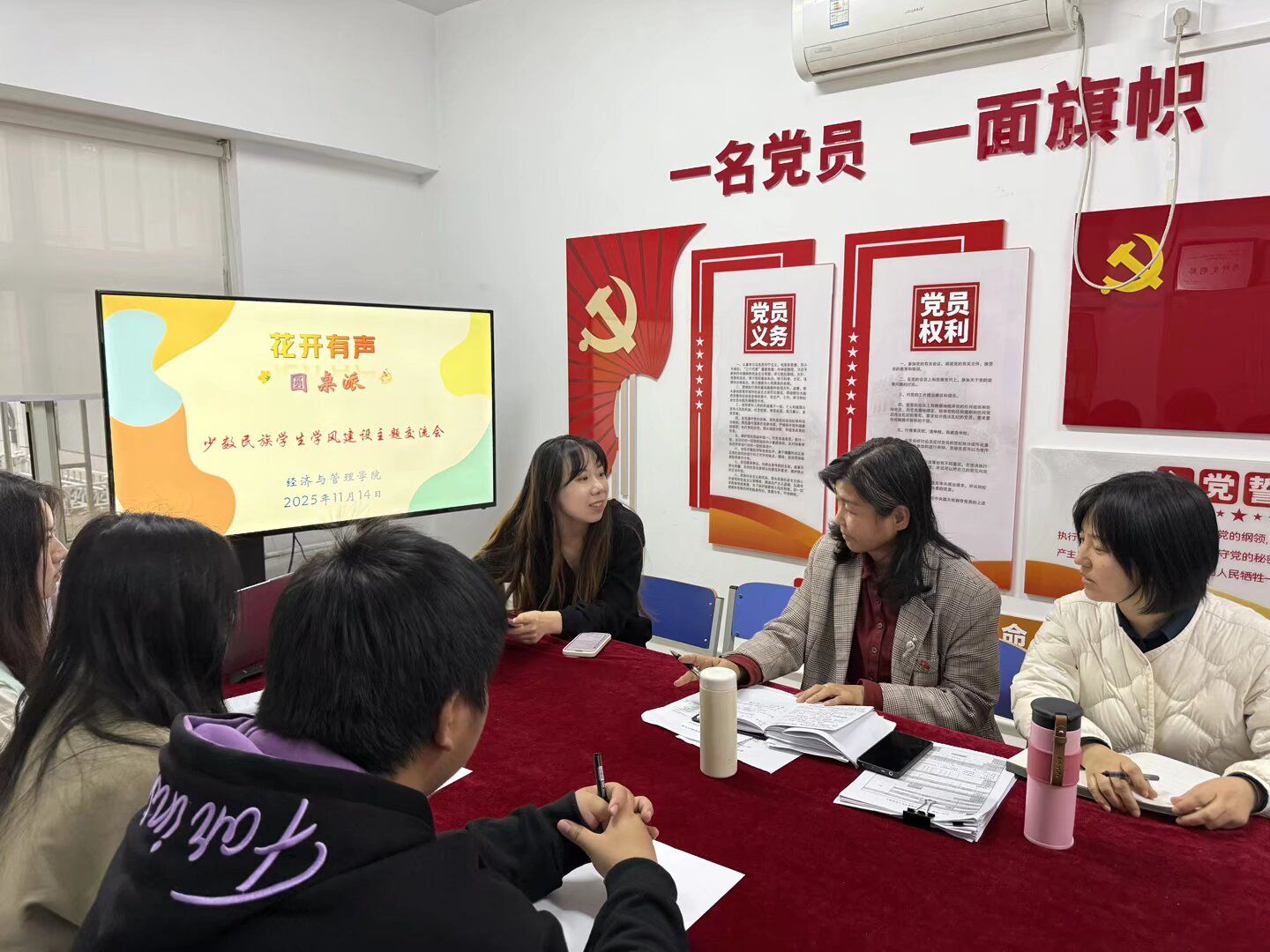 为深化民族团结进步教育,助力少数民族学生成长成才,11月14日,经济与管理学院在“一站式”学生社区召开“少数民族学生学风建设主题座谈会”。学院党委副书记郭丽芳、副处级组织员王爱敏以及各年级少数民族学生代表参会。本次活动由辅导员李丹慧主持。