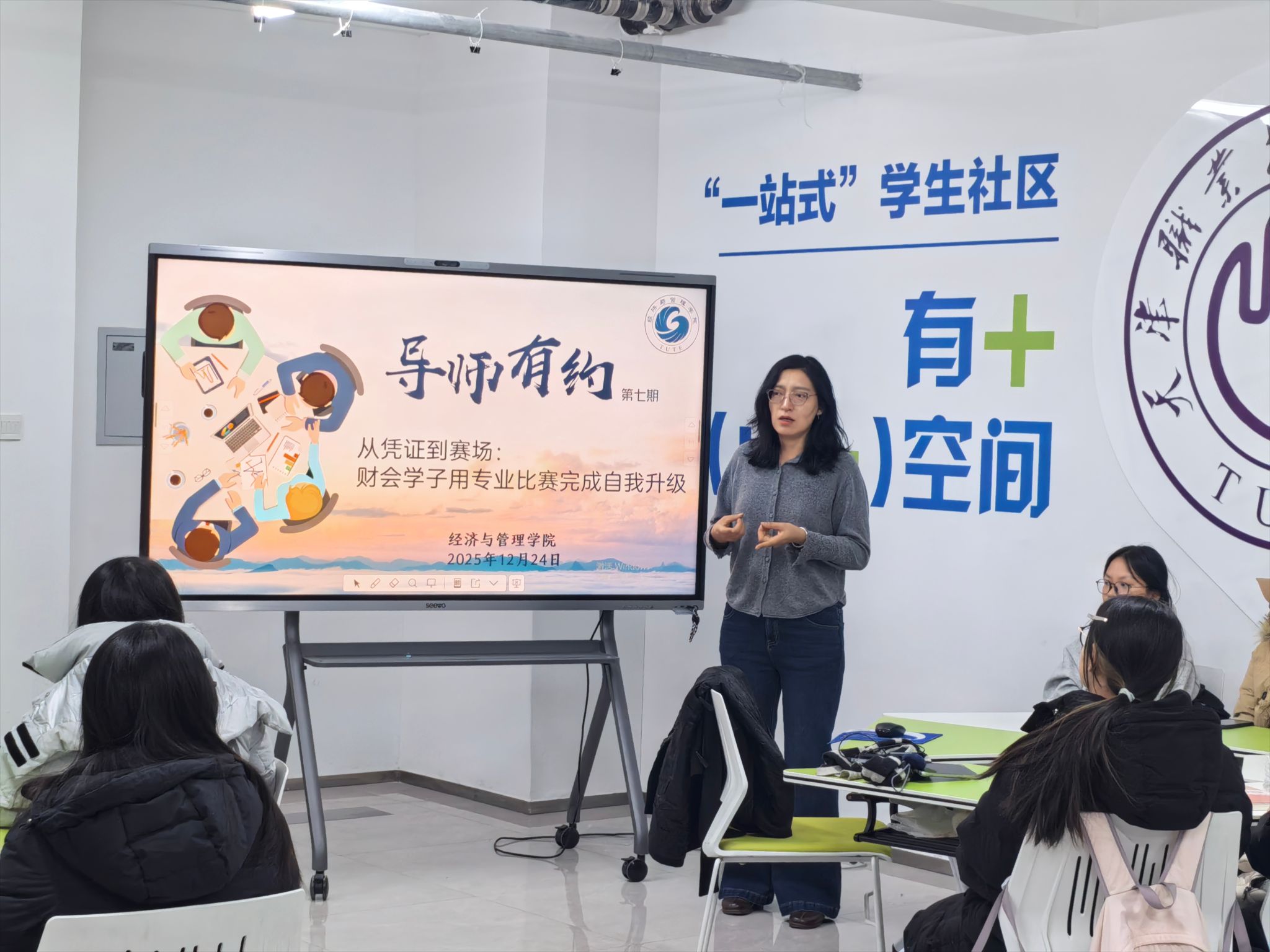 为帮助财会专业学子明晰竞赛价值、掌握备赛技巧,提升职业核心竞争力,12月24日晚,经济与管理学院“导师有约”第七期活动在东区U+空间顺利举办,主讲人是财务会计教育系隋杰老师。隋杰老师聚焦财会专业竞赛体系,为同学们带来了一场兼具理论深度与实战价值的精彩分享,助力学子从专业学习走向赛场历练,实现自我升级。