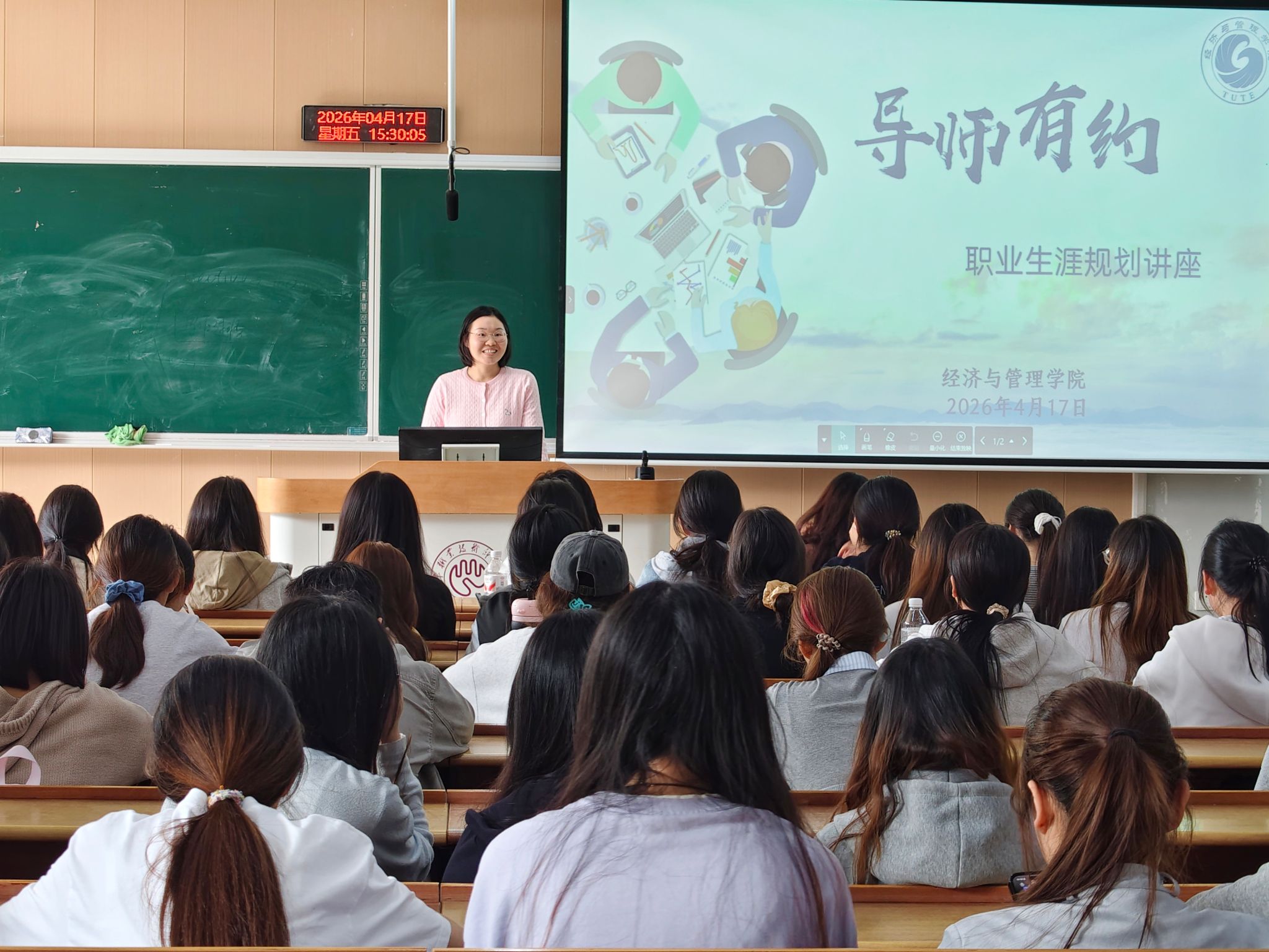 为搭建学生与行业精英对话的平台,提升职业生涯规划能力,4月17日下午,经济与管理学院在第三教学楼104教室举办“导师有约”职业规划专题讲座。学院特邀校企合作单位国台数智酒业营销有限公司电商营销事业部电商总监赵平等担任主讲,辅导员韩雅丽主持,副处级组织员王爱敏、电子商务系主任张波及学院100余名学生共同参加。