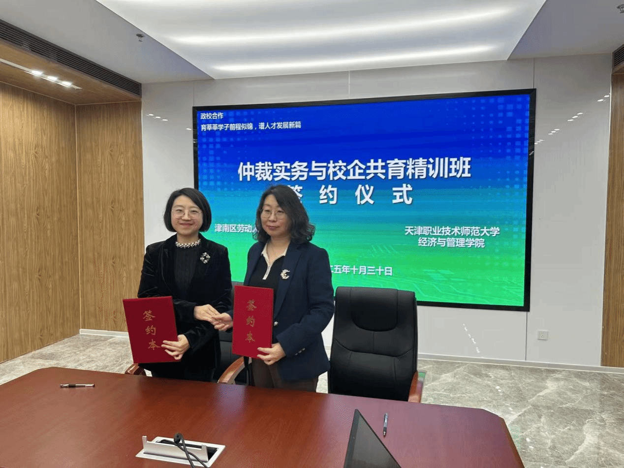 此次签约仪式的成功举行,为经济与管理学院搭建了校地企协同育人的新平台,也为津南区劳动人事争议仲裁工作注入了新动能。未来,三方将以合作协议为基础,持续深化资源整合与优势互补,在人才培养、社会服务、行业发展等方面携手共进,书写校地企协同发展的新篇章。